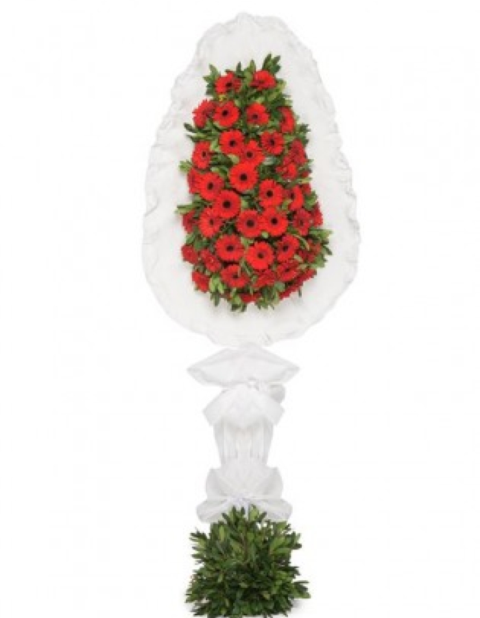Tekli Kırmızı Mevsim Çiçeklerinden Çelenk